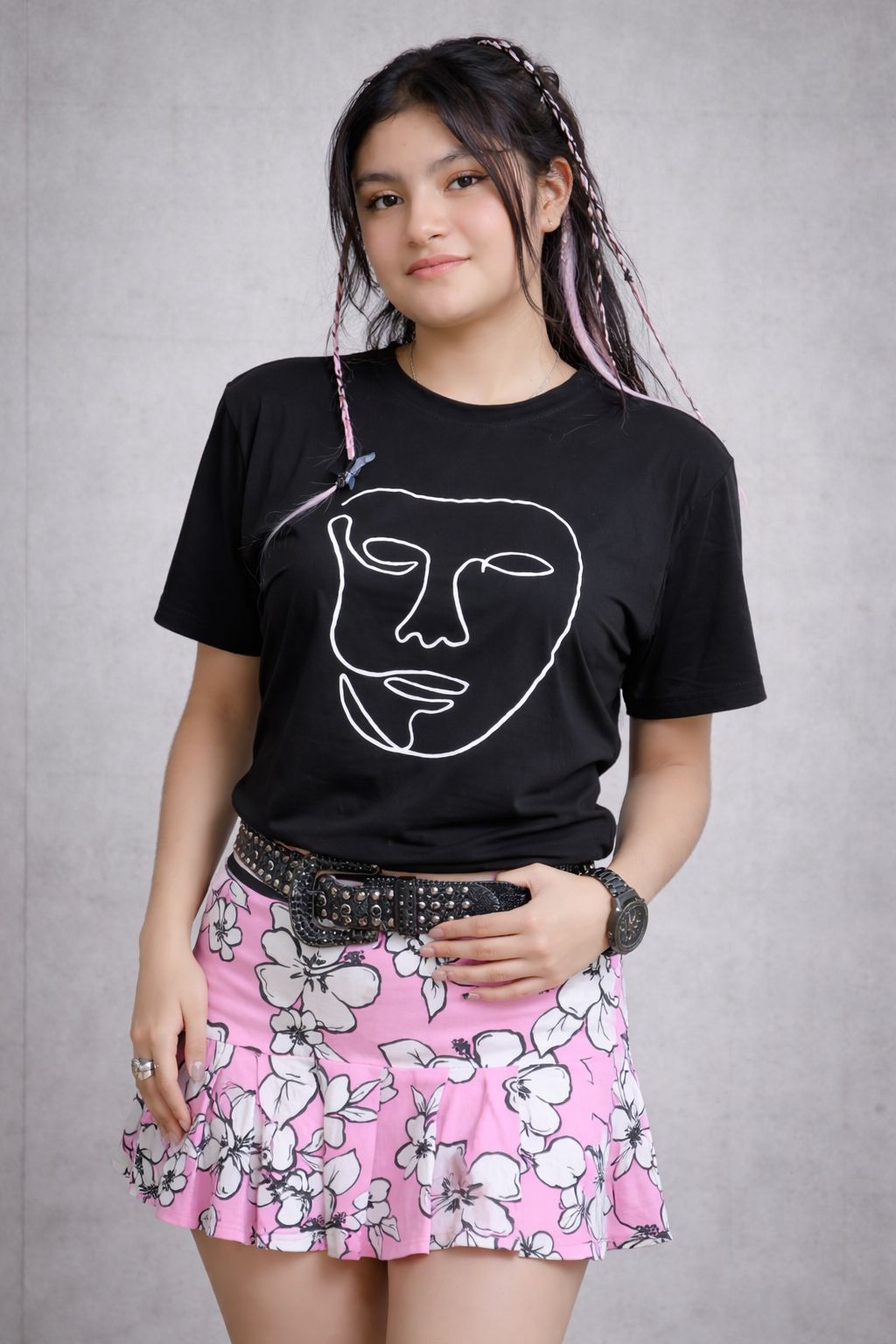 "A Mask of Darkness" presenta una camiseta totalmente negra con un llamativo rostro blanco lleno de misterio. La expresión principal del rostro convierte esta prenda en un icono elegante y sencillo, perfecto para atuendos nocturnos y oscuros. Esta prenda posee un fit regular acompañado de un toque distintivo, perfecta para lucir una pieza única y atractiva, pero sin dejar de lado lo clásico y cómodo.